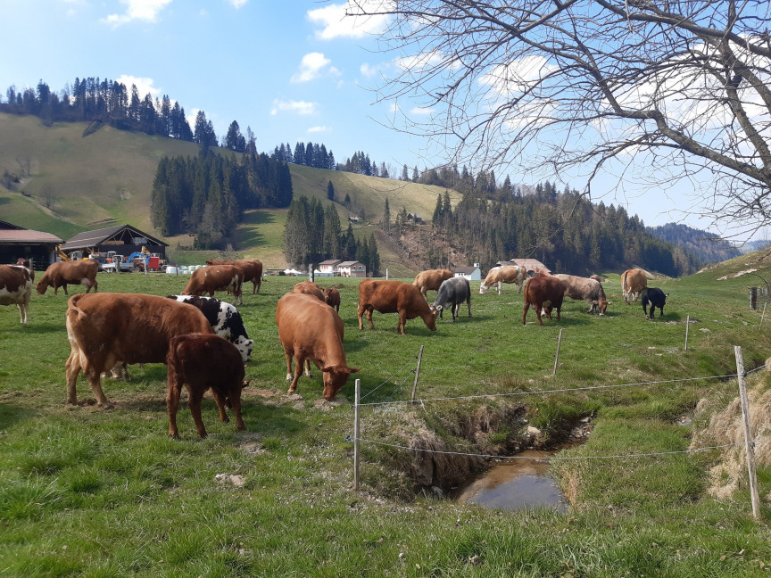 Wir haben auf Mutterkühe umgestellt und produzieren Mastkälber nach IP-Suisse Standard. Ausserdem haben wir den vorhandenen Anbindestall zu einem Laufstall umgebaut. Wir arbeiten mit zwei Partnerbetrieben zusammen.